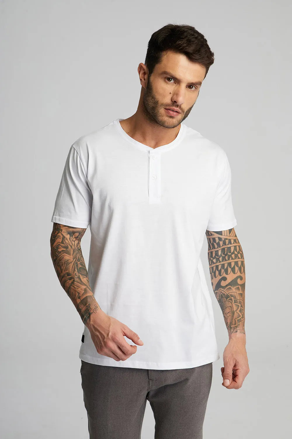Camiseta Pima Henley manga curta